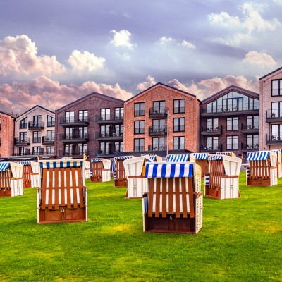 Right next to the 100-year-old lighthouse - between the museum harbour and the dike promenade - is the Lighthouse Spa & Hotel in Büsum. The building houses 111 rooms and suites, a wellness area and three restaurants. The design of the hotel complex picks up on the traditional architecture of the regionally common harbour houses. The building's design is correspondingly small-scale and heterogeneous.